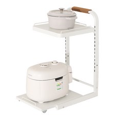 슬라이딩 방식의 2단 밥솥선반으로 6~9인용 밥솥 수납에 적합하며, 공간 활용을 높여주는 주방용 선반임.