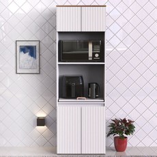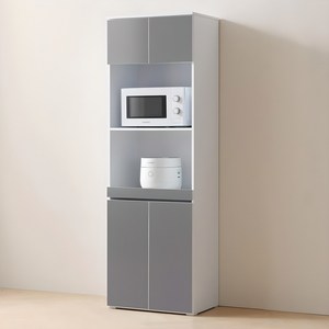 600mm 폭의 심플한 화이트 렌지대로, 전자레인지와 밥솥 등 주방가전을 깔끔하게 수납할 수 있음.