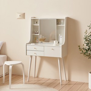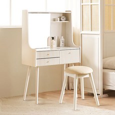 깔끔한 템바보드 소재로 제작된 수납 화장대와 원형 스툴 세트로, 넉넉한 수납 공간과 세련된 디자인을 갖춰 안방이나 드레스룸에 적합하며 방문 설치가 가능한 제품입니다.