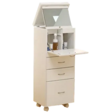 이지무브 바퀴가 달린 이동식 수납 화장대 원목 틈새 서랍장 슬림 월넛 화이트 거울, 월넛 브라운