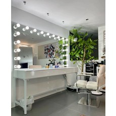 LED 조명이 포함된 뷰티샵용 화장대로, 서랍 수납 기능과 분장용 거울이 갖춰져 있어 미용실이나 침실, 업소용으로 활용 가능한 조립식 제품입니다.