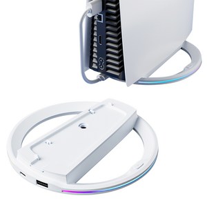 플스5 프로와 슬림 모델을 안정적으로 세워주며 LED 조명이 적용된 수직 거치대 스탠드로 공간 활용과 디자인 효과를 동시에 제공하는 제품입니다.