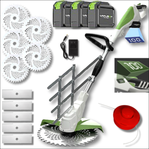 GLTM 독일기술 초경량 충전식 예초기는 무선 전기 초강력 제초기로, 프리미엄 패키지로 제공됩니다. 1세트에는 배터리 3개가 포함되어 있습니다.
