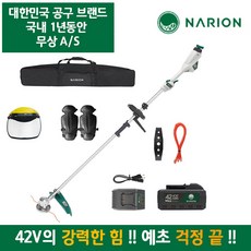 나리온 예초기 42V 충전예초기는 무선으로 편리하게 사용할 수 있는 예초기입니다. 이 제품은 2단분리와 각도조절이 가능하며 최대 80분 사용이 가능하며 배터리 1개 세트가 포함되어 있습니다.